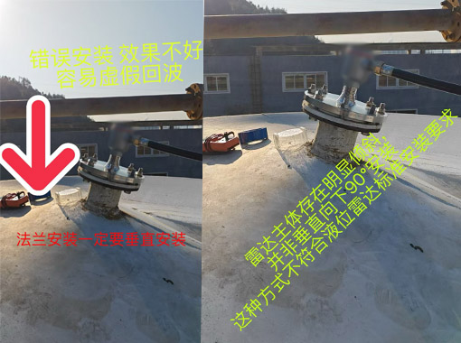確保雷達(dá)法蘭與罐體安裝口完全垂直,雷達(dá)探頭應(yīng)嚴(yán)格垂直向下(90°)。