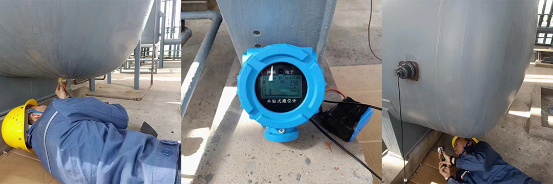 外貼式液位計(以下簡稱液位計)利用聲吶測距原理、從容器外部(底部)測量容器內部液體液位的儀表,該產品實現了完全隔離測量。該液位計打破了傳統開罐接觸的安裝方式,實現了對密閉容器內液位高度的真正非接觸測量。聲吶傳感器(探頭)安裝于被測容器外壁的正下方(底部),不需對被測容器開孔,安裝簡易,可以實現不停產安裝。可對高溫、高壓密閉容器內的各種有毒物質﹑強酸﹑強堿及各種純凈液體的液位進行精確測量。外貼式液位計對容器的材質無特殊要求,并采用隔爆設計,滿足防爆要求,可廣泛使用。