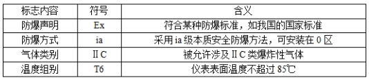 注 : 該標志中無溫度組別項 , 說明該儀表不與爆炸性氣體直接接觸 .